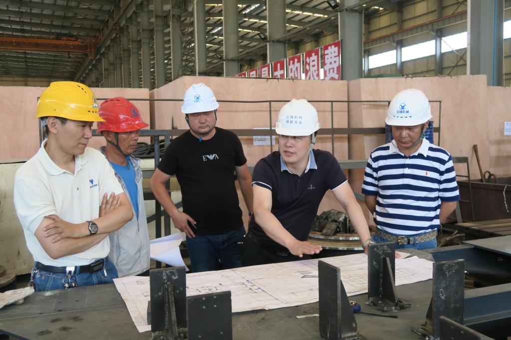 6月4日,機械(錫都實業)公司黨委書記、董事長、總經理陳雄軍來到礦冶設備分公司實地查看生產情況,詳細了解焊接機器人調試進度、產能、預計季度產值及目前存在的困難與問題,督促礦冶設備分公司加快推進轉型升級。