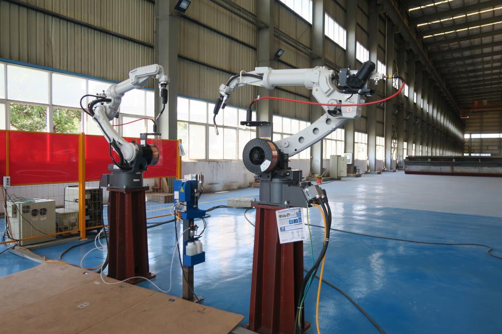 兩公司管理整合以來,機械(錫都實業)公司不斷加快各產業轉型升級,引進和更新生產設備。據悉,焊接機器人正式投入使用后,將實現每天焊接12個搖床鋼架,綜合生產效率相比手工焊接提升近20倍,且焊接質量更加穩定。
