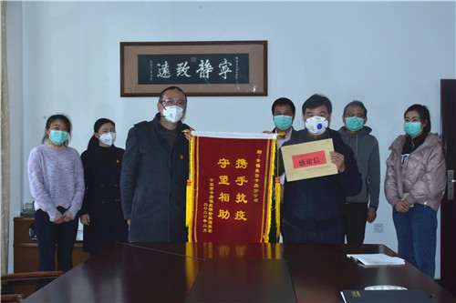 3月4日,卡房鎮政府黨委書記張建云代表鎮疫情防控工作領導小組,把一面繡有“攜手抗疫 守望相助”的錦旗和一封感謝信送到云錫卡房分公司黨委書記賽德輝手中,對卡房分公司在地方防疫阻擊中的責任擔當和奉獻精神表示誠摯感謝。