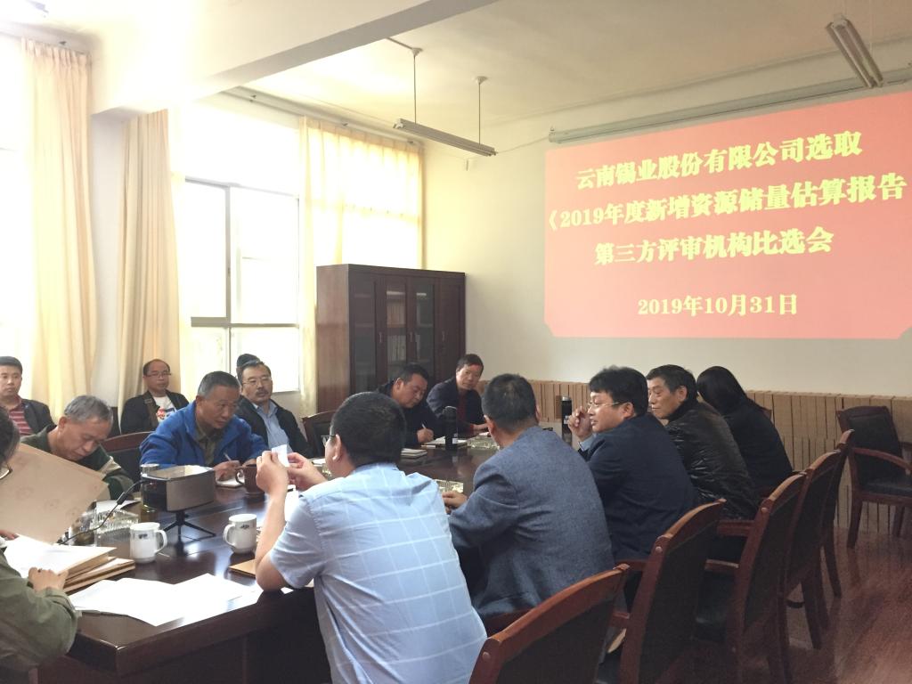 10月31日,錫業股份公司《2019年度新增資源儲量估算報告》第三方評審機構比選會在紅河資源公司召開。控股公司地測專業委、紅河資源公司相關部門負責人,錫業股份監察審計部相關人員,老廠分公司、大屯錫礦、卡房分公司技術負責人及分管領導,4個投標單位參加比選會。