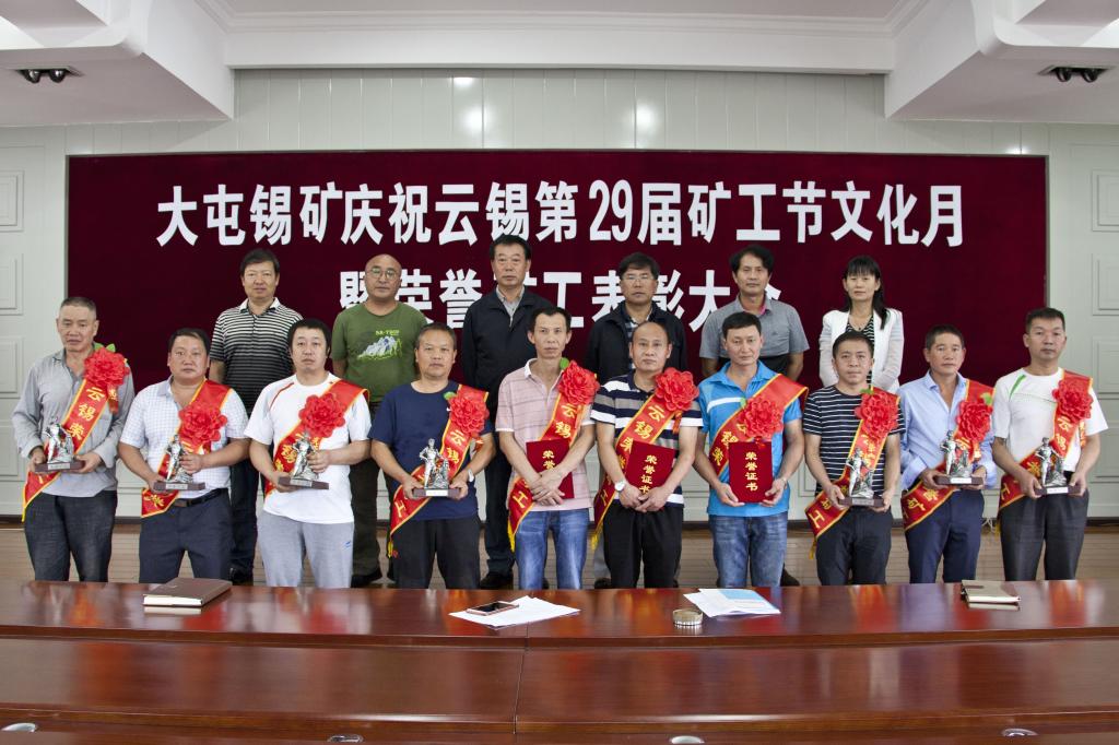 “今天,我們相聚在這里,共同慶祝自己的節(jié)日——云錫第29屆礦工節(jié)文化月,并對被控股公司授予‘榮譽礦工’光榮稱號的10名同志給予表彰獎勵!在此,我代表礦黨、政、工、團向獲得光榮稱號的榮譽礦工表示熱烈的祝賀!向辛勤奮戰(zhàn)在各條戰(zhàn)線上的廣大干部員工致以節(jié)日的問候和衷心的祝愿!”大屯錫礦黨委書記張學(xué)平熱情洋溢的講話,拉開了慶祝表彰大會的序幕。