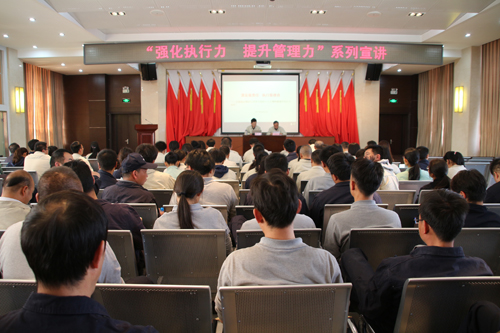 本次“強化執(zhí)行力,提升管理力”系列宣講作為提升執(zhí)行力的第一講,拉開了錫材公司2019年打造執(zhí)行力文化的序幕。王鵬飛以執(zhí)行和落實的區(qū)別引入,向參訓人員講解了執(zhí)行的含義就是“照著干”,分別從抓落實、強執(zhí)行比什么都重要,抓落實、強執(zhí)行是成功之母,抓落實、強執(zhí)行要講方法有目標,抓落實、強執(zhí)行要有信念和意志四個方面作了深入淺出的講解。