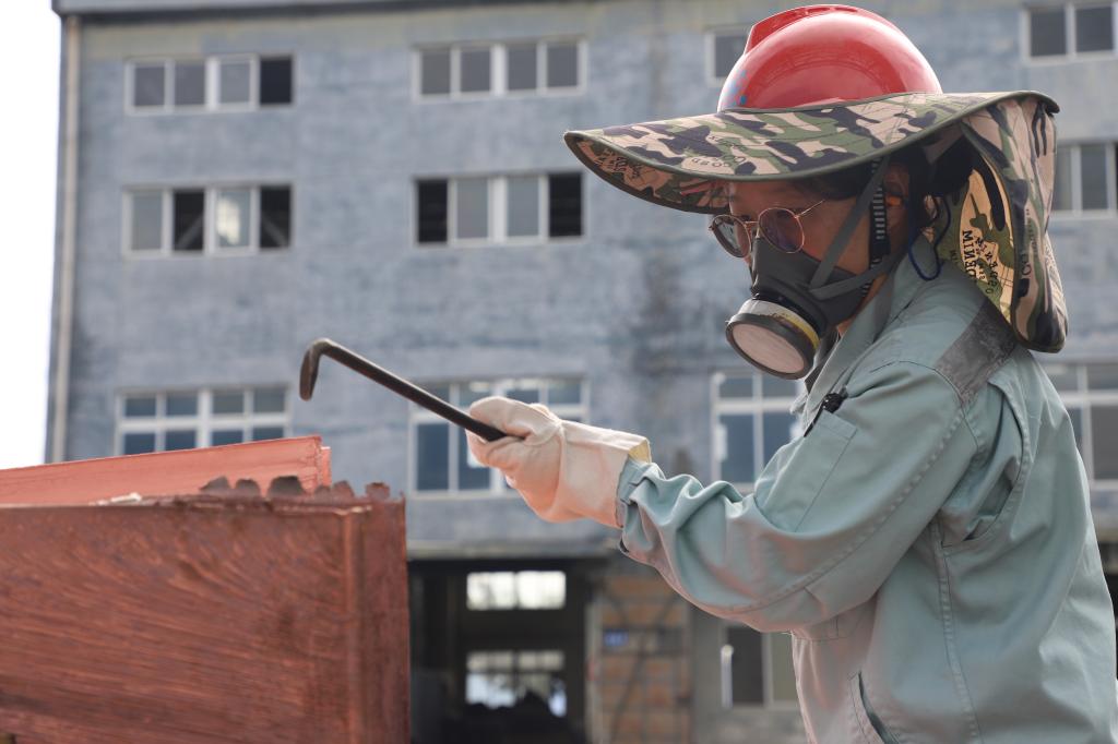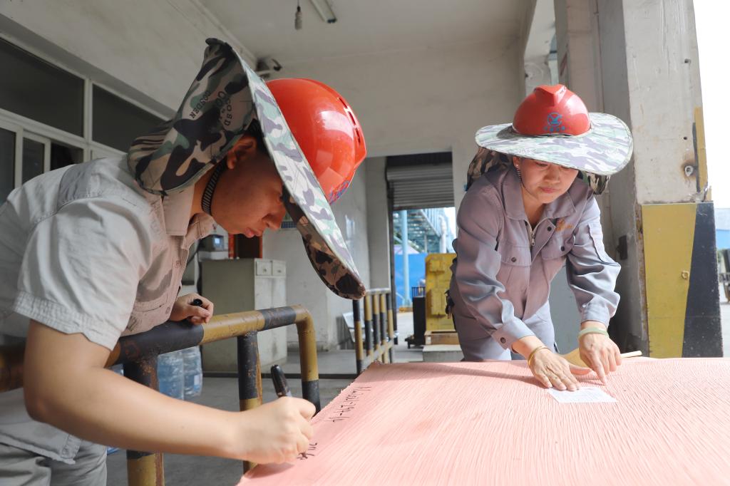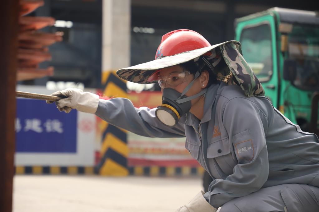 在一頂頂特殊的安全帽下,是一張張掛滿汗珠的臉龐;拉開口罩、取下護目鏡,個個都是溫柔的動人笑臉。她們每天與陰極銅板打交道,在產(chǎn)品運輸區(qū)域經(jīng)受著風(fēng)吹日曬雨淋,每人佩戴的特殊安全帽因此而來,是質(zhì)監(jiān)中心為了緩解每天八小時的戶外暴曬對姑娘們皮膚造成的傷害,踐行“我為群眾辦實事”承諾的體現(xiàn),也成為了銅業(yè)分公司質(zhì)量監(jiān)測中心檢驗三組的標(biāo)志。