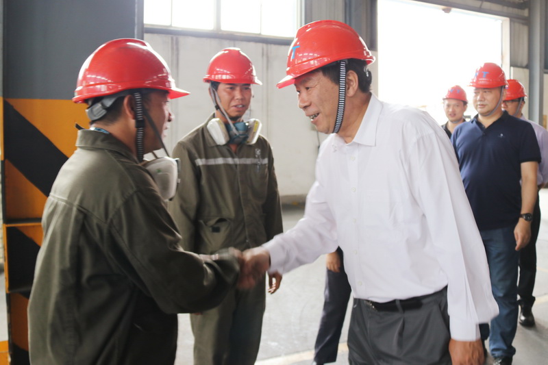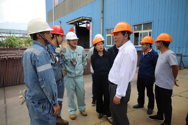 在銅業分公司,張濤首先查看了12.5萬噸/年陰極銅升級改造項目施工現場,詢問了項目建設進度等方面的情況。到電解車間陰極剝片機組控制室、電解精煉槽面兩個重點工作崗位,對值班值守情況進行了檢查,要求大家一定要安排好節日期間的值班值守,在崗期間要履職盡責,加強巡查,抓好安全生產,確保節日期間安全風險管控和各項應急準備到位。嚴格把控銅電解精煉各項生產要素,確保節日期間銅業分公司陰極銅產品產量達標、質量合格。隨后,在熔煉車間主控室,張濤與在崗員工親切握手,向他們致以節日的問候。