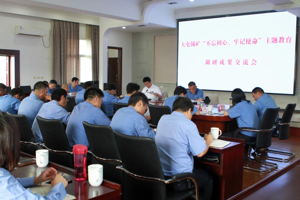 8月19日,大屯錫礦召開“不忘初心、牢記使命”主題教育調研成果交流會,以問題為導向,凝聚共識,擔當使命,加強調研成果轉化,推動主題教育工作和生產發展兩手抓、兩促進??毓晒局黝}教育第七指導組組長湯發、副組長楊宏賢到會指導。
