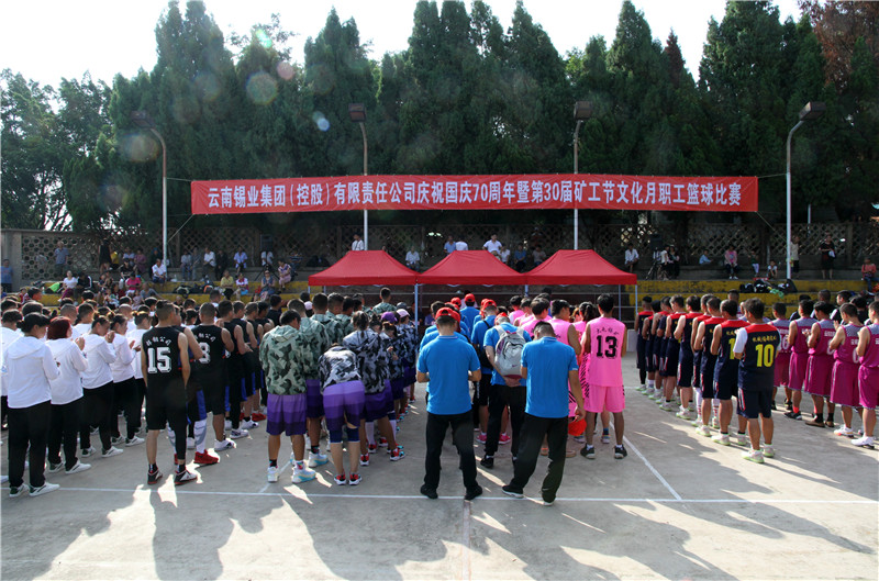 8月20日,控股公司慶祝國慶70周年暨第30屆礦工節文化月職工籃球比賽在大屯錫礦鳴鑼開賽,11支男隊和6支女隊將在為期一周的賽程內捉對比拼,盡顯競技運動的魅力??毓晒军h委常委、工會主席湯發,控股公司工會副主席、團委書記張弛,以及各單位工會主席,各單位參賽隊伍等200余人參加開幕式。