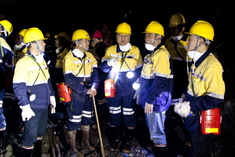 3月6日,紅河州常務副州長李成武率個舊市市長王崢,州、市相關部門負責人等到大屯錫礦井下實地檢查安全生產工作,召開現場工作會,聽取控股公司開展礦山安全生產“攻堅克難”和“三同時”工作情況。控股公司黨委書記、董事長張濤,黨委副書記、副董事長、總經理李剛,黨委常委、副總經理程睿涵陪同檢查。