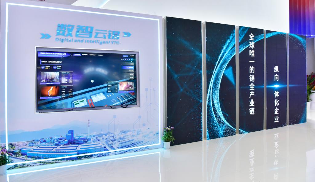“錫銦新質生產力”板塊以五折屏形式,呈現云錫作為全球唯一的錫全產業鏈縱向一體化企業,以科技創新引領高質量發展的生動實踐;通過錫冶煉數字孿生工廠線上演示,展現云錫以數智化賦能,推進5G+應用與產業深度融合,加快打造全球錫行業唯一“燈塔工廠”的新探索。