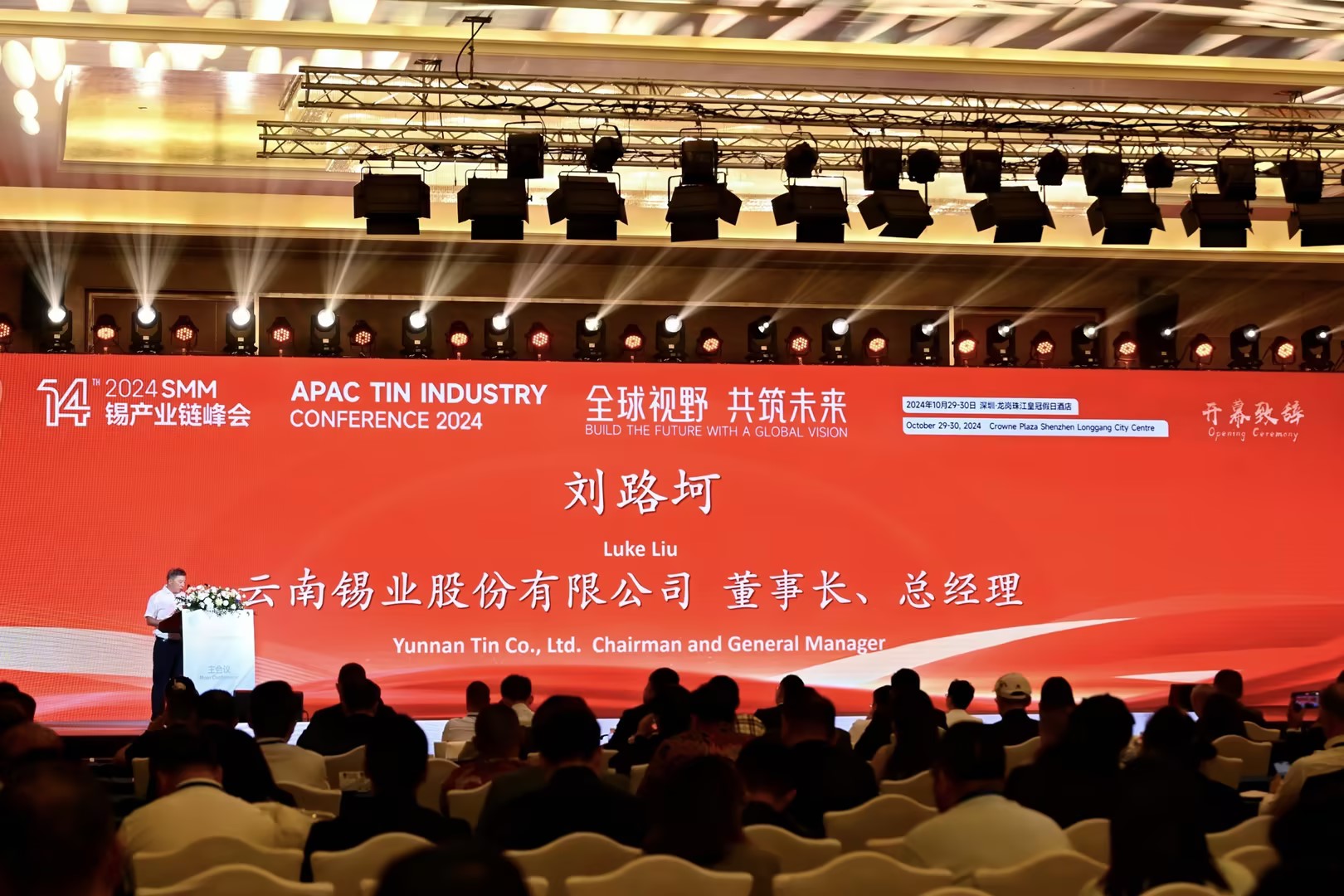 10月29日,2024年(第十四屆)中國錫產業鏈峰會在深圳開幕。本屆中國錫產業鏈峰會由上海有色網主辦,云錫特邀協辦。錫業股份黨委書記、董事長、總經理劉路坷率隊參加本次錫產業鏈峰會并做開幕致辭。