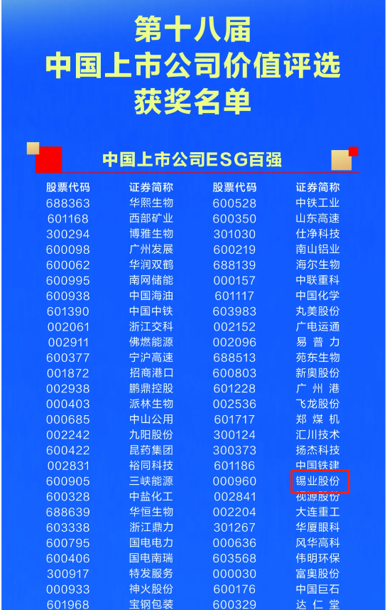 同日,證券時報(bào)主辦的“第十八屆中國上市公司價值論壇暨2024新質(zhì)生產(chǎn)力巡禮長三角行”在江蘇昆山舉辦,會議在全面考量上市公司經(jīng)營、財(cái)務(wù)、創(chuàng)新、市場影響以及社會責(zé)任等各方面表現(xiàn)的基礎(chǔ)上評選出了“2024中國上市公司ESG百強(qiáng)”榜單,錫業(yè)股份成功入選。此次榮獲2023年度金信披獎及“2024中國上市公司ESG百強(qiáng)”稱號是公司高質(zhì)量發(fā)展、全方位綜合實(shí)力不斷增強(qiáng)的體現(xiàn),更是各界評委對公司規(guī)范運(yùn)作、信息披露、環(huán)境保護(hù)、社會責(zé)任履行及公司治理等工作的充分肯定。