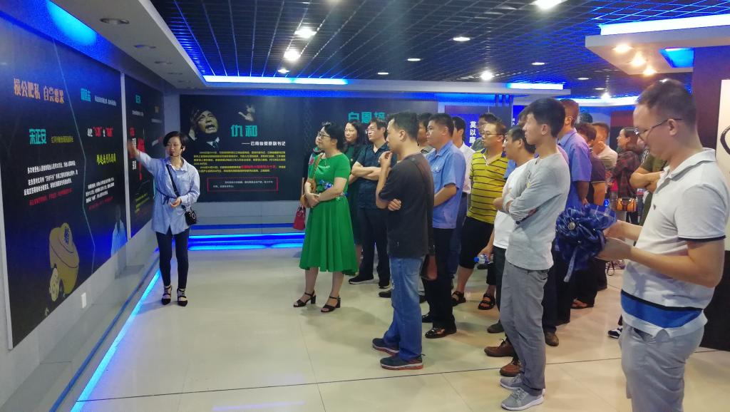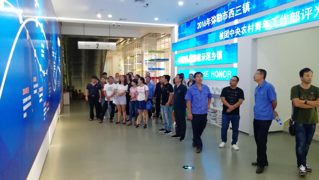 在州展覽館,館內以“山水情懷,生態靈魂,人文精神”為主題,采用聲、光、電等多媒體電子科技設備,使黨員干部們直觀地認識紅河州的歷史和今后的發展戰略、總體規劃及各層次規劃。一層的滄桑巨變六十載,展示了紅河60年的重大歷史事件,著名的百年滇越鐵路、百年云錫礦業、百年開阜通商等;二層建設成果展區和規劃展區,包括城建大事記、奔騰紅河、戰略規劃、州城鎮體系規劃、滇南中心城市總體規劃和核心區數字沙盤、重點園區建設、能量單車、飛行影院、互動體驗項目等10個展區。通過參觀,加強了黨員干部們對紅河州發展歷程、成就和愿景的深入了解,堅定了不忘初心、牢記使命,為建設現代礦山不懈努力的信心。
