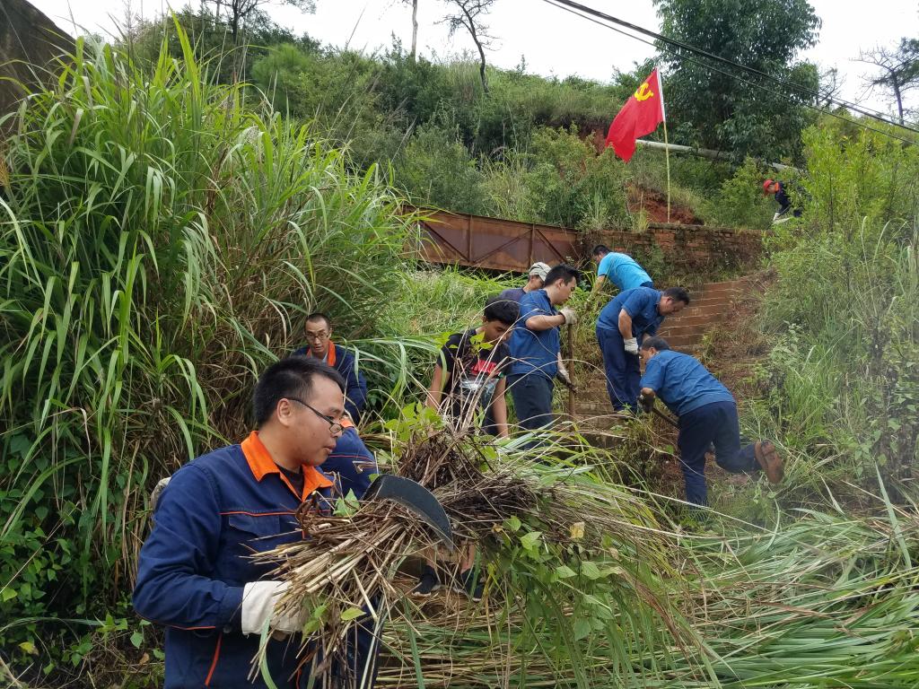 主題黨日活動主要針對因連日降雨,技術監督部各片區道路、溝道兩旁被雨水沖刷出的泥土、垃圾較多,防洪溝道阻塞,有的路段雜草叢生,泥滑路爛,特別是中夜班職工送樣加工路途中容易跌倒,存在一定的安全隱患問題。為營造優美環境,方便職工出行,技術監督部組織羊壩底片區、塘子凹片區、老廠片區、官家山產品跟蹤組的黨員展開清理行動。