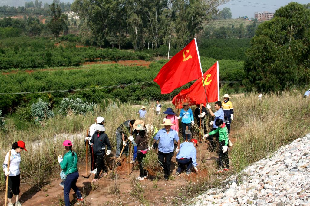 5月27日,兩面鮮紅的黨旗飄揚(yáng)在官家山團(tuán)山尾礦壩上,大屯錫礦機(jī)關(guān)黨總支、氧化礦車間黨支部近80名黨員、入黨積極分子聚集在黨旗下,種植草木,穩(wěn)固壩體,保護(hù)生態(tài)環(huán)境。