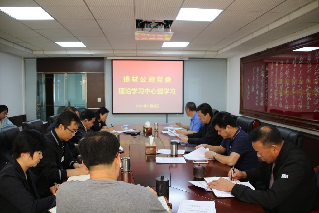 5月9日,錫材公司黨委理論學習中心組舉行第二次集中學習研討,深入學習貫徹習近平新時代中國特色社會主義思想,進一步統一思想、凝聚共識,用理論武裝頭腦、指導實踐,確保全年生產經營和深改攻堅目標任務完成。