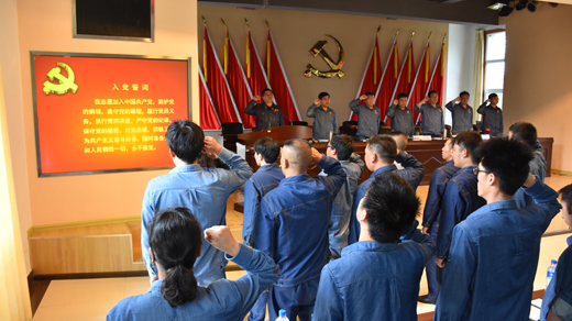與會的全體正式黨員預備黨員面對黨旗宣誓,莊嚴的誓詞激勵著每一名黨員牢記使命、奮勇前行。