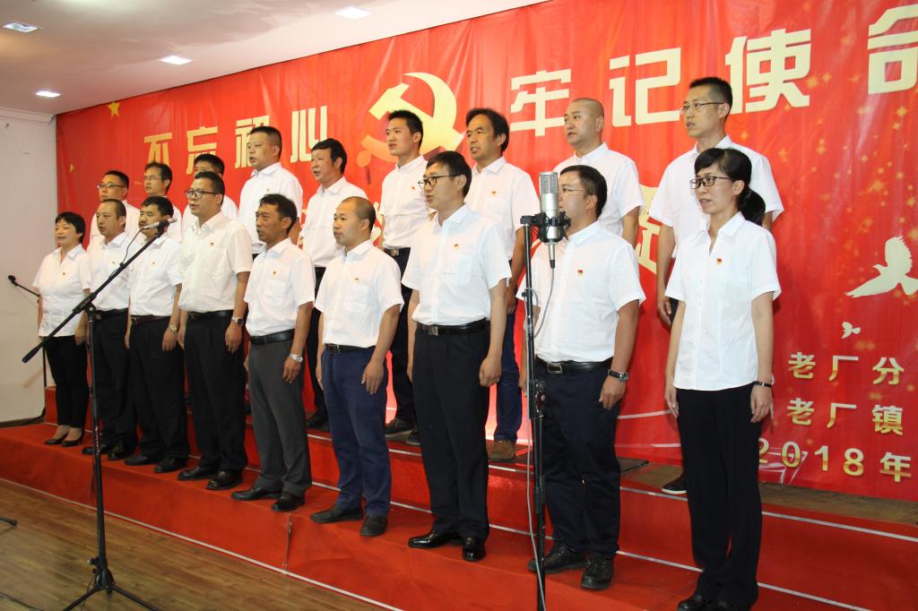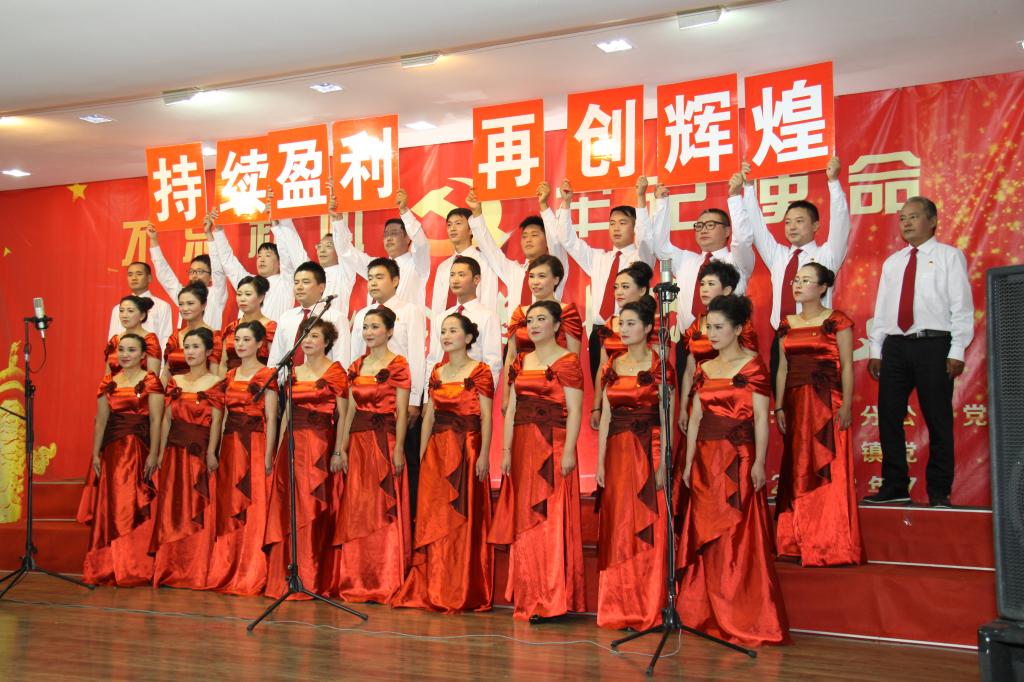 在“不忘初心 牢記使命”紅歌合唱比賽正式開始前,老廠分公司、老廠鎮(zhèn)的領(lǐng)導(dǎo)班子成員聯(lián)合組隊(duì)帶頭合唱了《我宣誓》。此次比賽每個參賽隊(duì)唱兩首歌,一首是必唱歌曲《我宣誓》,一首為自選歌曲。各參賽隊(duì)的選手們以飽滿的熱情、激昂慷慨的士氣、嘹亮的歌聲,競相唱響入黨誓詞,歌唱偉大的中國共產(chǎn)黨。