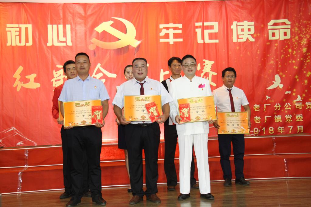 7月17日,為慶祝中國共產(chǎn)黨成立97周年,回顧黨的光輝歷程、謳歌黨的豐功偉績,老廠分公司黨委和老廠鎮(zhèn)黨委在分公司食堂三樓會議室聯(lián)合舉辦以“不忘初心 牢記使命”為主題的紅歌合唱比賽。老廠分公司10支參賽隊(duì)和老廠鎮(zhèn)1支參賽隊(duì)參加比賽,老廠政企領(lǐng)導(dǎo)、200余名老廠分公司員工及老廠鎮(zhèn)各單位代表觀看了比賽。