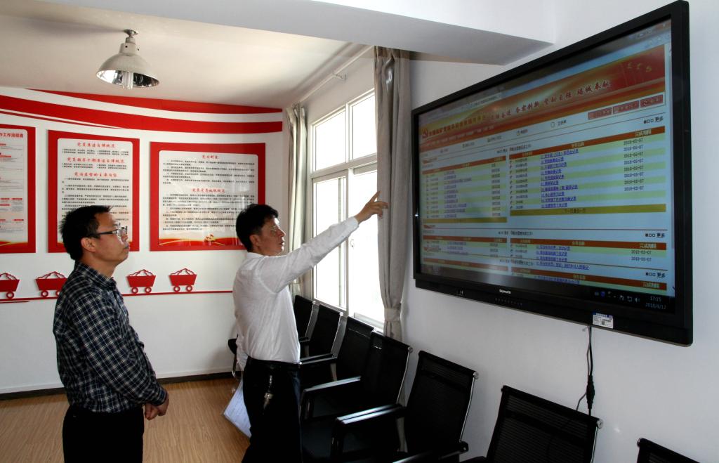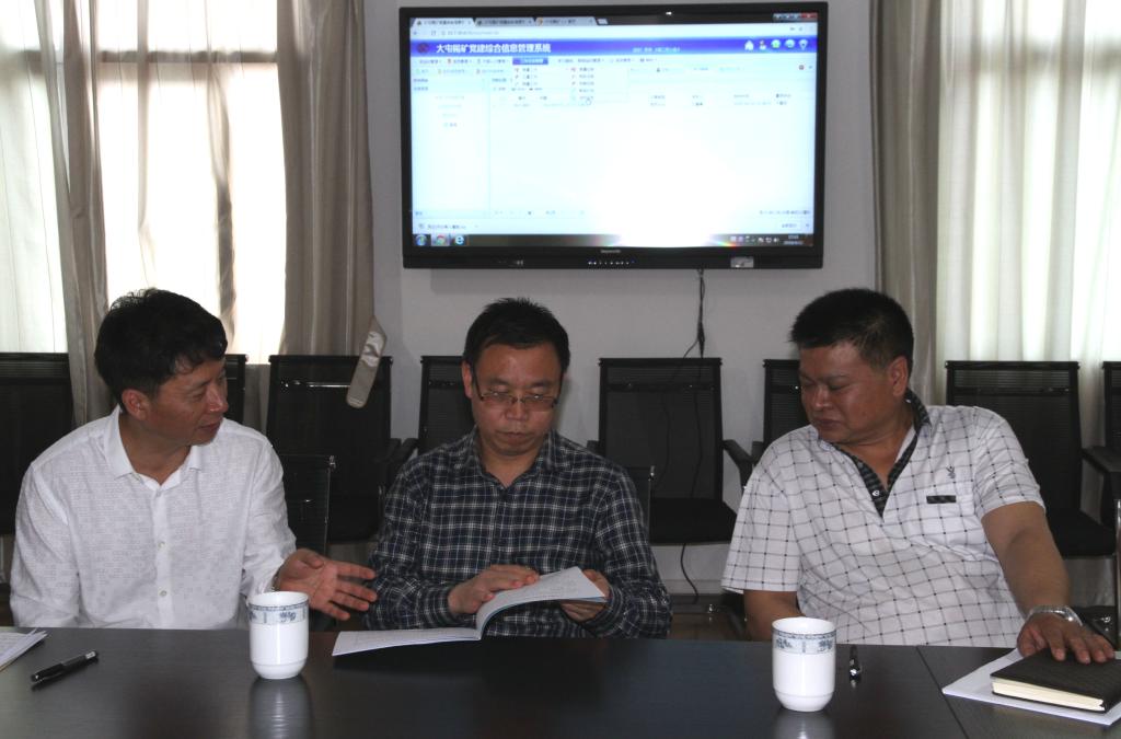 “目前有多少黨員?‘三會一課’制度是否按要求執(zhí)行?黨員對一系列黨建工作是什么態(tài)度?”姚家立在檢查三坑黨總支黨員活動室建設工作時,詢問了黨建工作相關(guān)情況。三坑黨總支書記逐一回答了姚副書記的提問,并就所開展的黨建工作情況作了匯報,其中,組織黨員觀看央視專題片《榜樣》,開展“看榜樣、學榜樣、爭做榜樣”活動;設立坑下黨員活動陣地,結(jié)合安全工作推行現(xiàn)場標準化定置管理等特色實踐活動。三坑坑長對坑口人力資源配置、今年以來的生產(chǎn)組織情況作了匯報。組織人力資源部門介紹并演示了正在測試的大屯錫礦黨建綜合信息管理系統(tǒng),該系統(tǒng)分為組織管理、黨員管理、干部人才管理、工作任務管理和學習交流五大模塊,具備權(quán)限分級、保密性強、覆蓋面廣和兼有互動等特點,通過系統(tǒng)建設與管理,可實現(xiàn)基層黨建“標準化建設、程序化控制、痕跡化管理、常態(tài)化考核、持續(xù)化改進,特色化發(fā)展”。