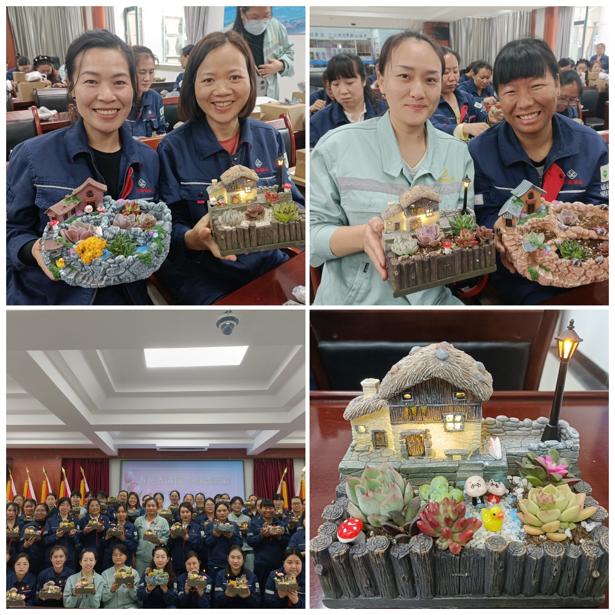 銅業分公司:銅業分公司開展“春色秀滿園 巾幗譜新篇”盆景手作DIY活動,在工作人員講述完盆景手作活動流程后,女職工們就迫不及待的開始創作自己的作品。從整體構思、填土、種花到裝飾,大家盡情享受著制作過程的快樂。經過女職工們的絕美創作,一盆盆精美可愛的盆景作品陸續完工。活動不僅讓廣大女職工享受到一場手工藝設計文化的盛宴,也緩解了女職工平日工作壓力和疲勞,促進了交流和互動,增強了凝聚力向心力。大家紛紛表示,將會以更加飽滿的工作熱情投入各自崗位,為分公司高質量發展建功立業,為圓滿完成分公司全年目標任務貢獻巾幗力量。(賈嬌)