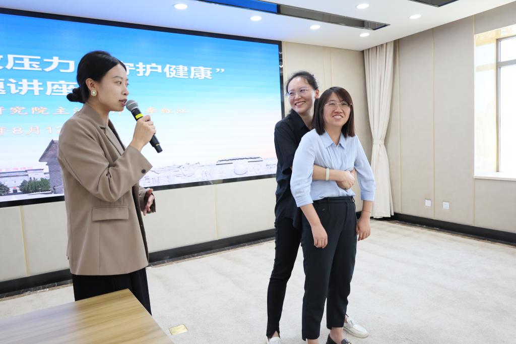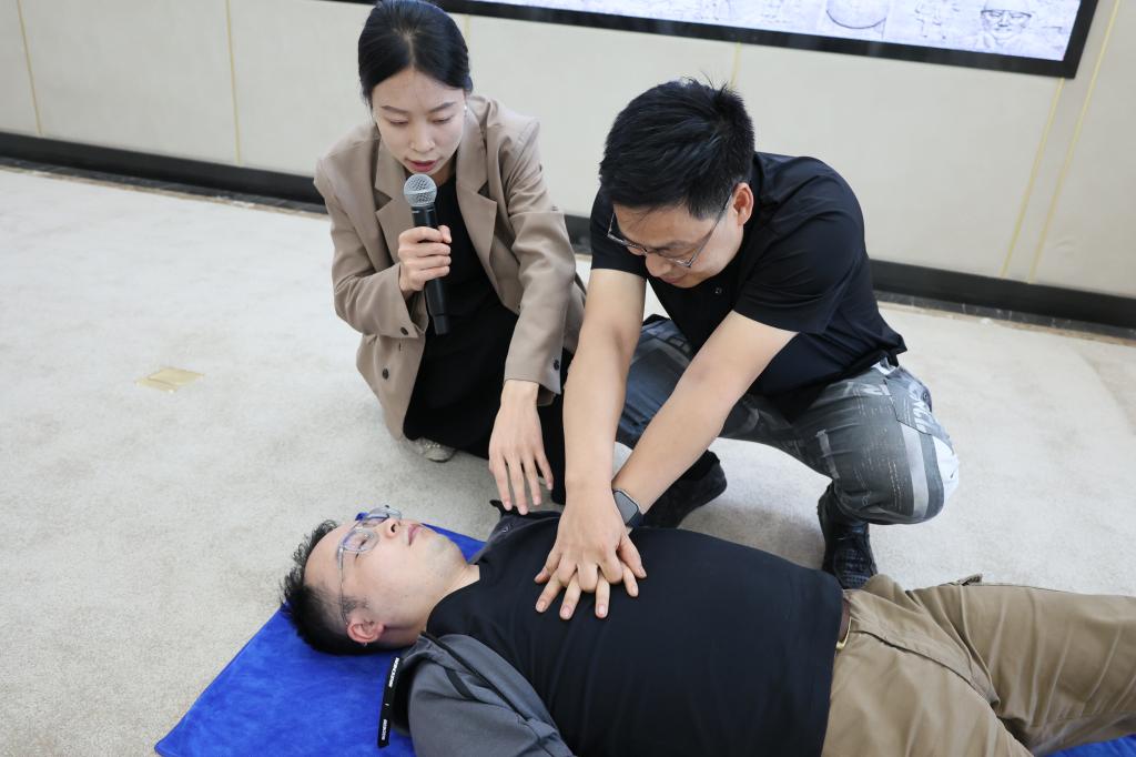 中醫(yī)康復研究院主治醫(yī)師李紅江圍繞順應春夏秋冬四時養(yǎng)生、日常穴位按摩保健、職場常見肩頸腰椎疼痛護理、高血脂高血糖高血壓基礎病預防、心梗腦梗應急處理等方面進行授課;針對如何把握“黃金時間”進行有效應急救護,現(xiàn)場演示海姆立克急救法、心肺復蘇等急救措施。